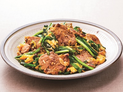 【豚ヒレとにらのスタミナ炒め】(2人分)