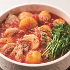 鍋にバターを溶かし、玉ねぎを入れて炒める。しんなりしたら、じゃがいも・新ごぼうを加えて炒め合わせる。